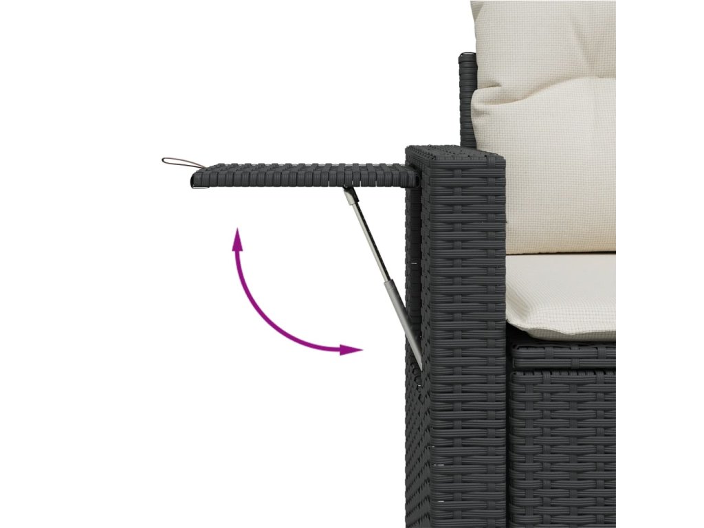 - Pohodlný odkládací stolek: Tento venkovní nábytek má na područkách skládací stolky s plynovou pružinou, jež poskytují praktické místo pro vaše nezbytnosti, kde je budete mít na dosah ruky.
