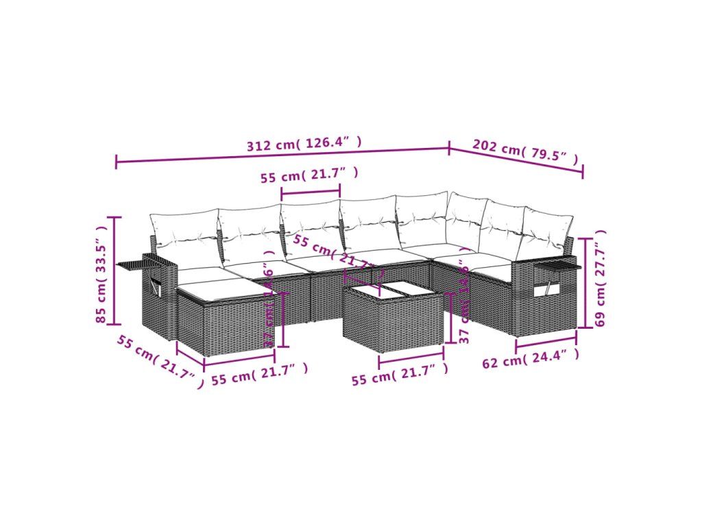 9dílná zahradní sedací souprava s poduškami černá polyratan 3220565
