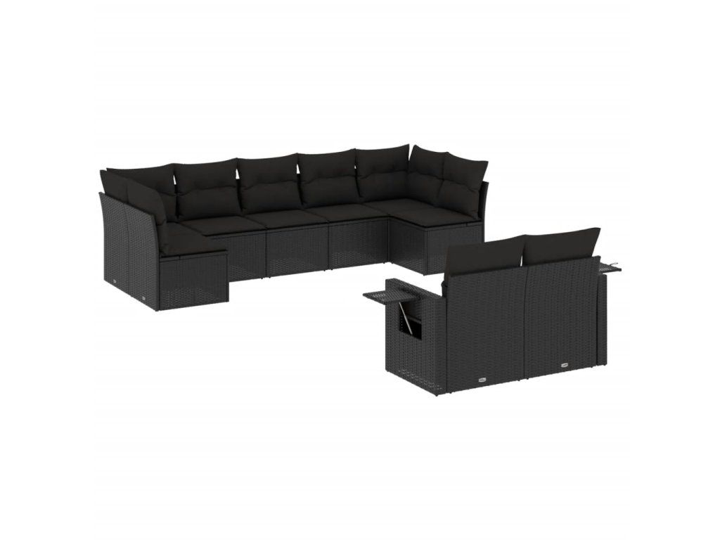 9dílná zahradní sedací souprava s poduškami černá polyratan 3220614