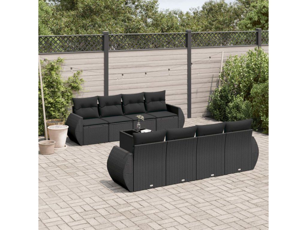 9dílná zahradní sedací souprava s poduškami černá polyratan 3221144