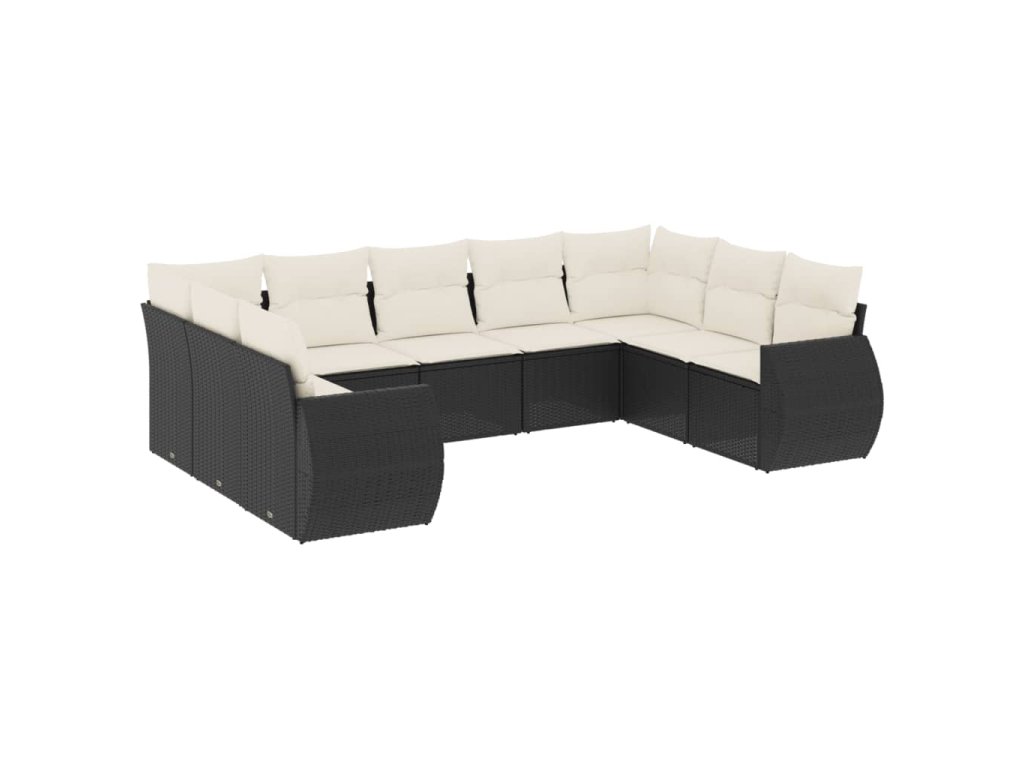 9dílná zahradní sedací souprava s poduškami černá polyratan 3221795