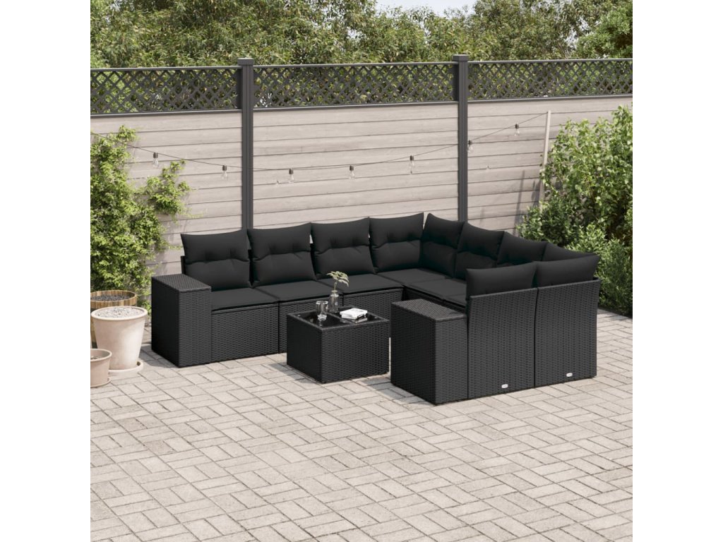 9dílná zahradní sedací souprava s poduškami černá polyratan 3222354