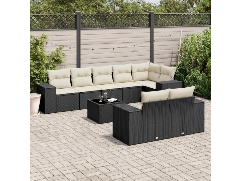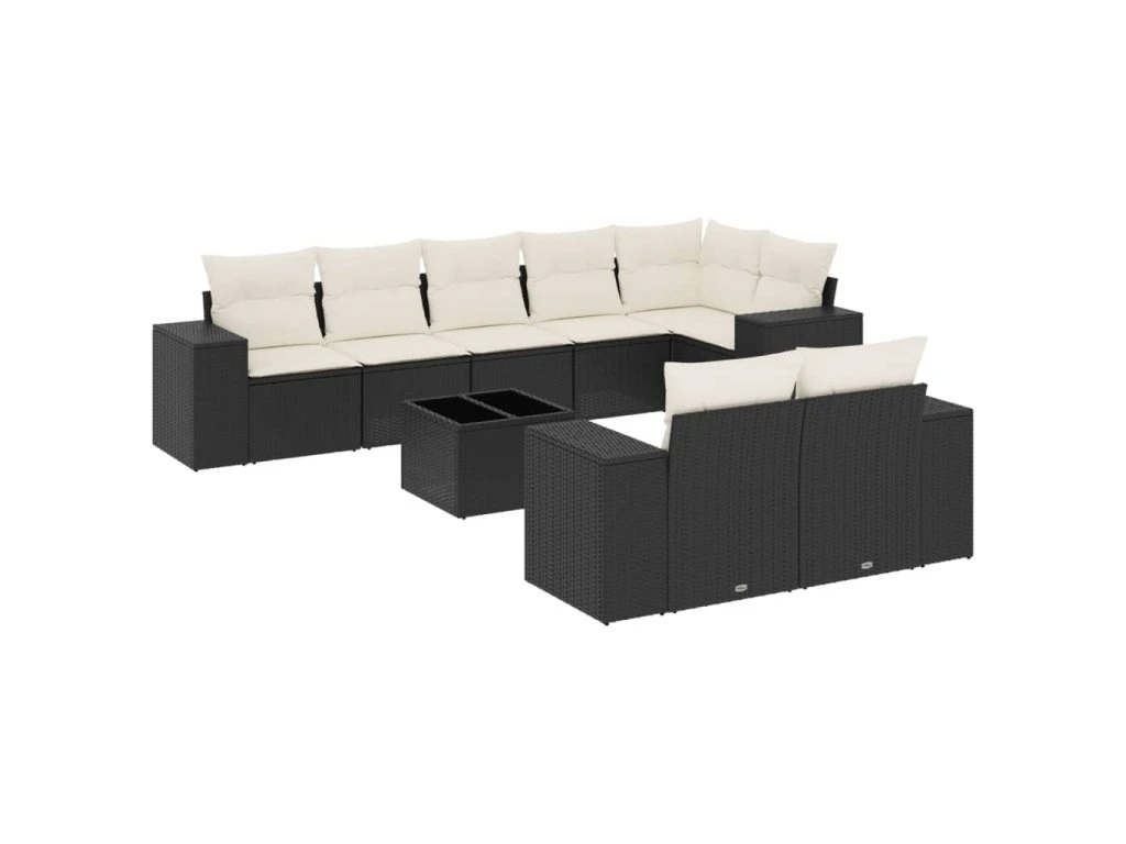 9dílná zahradní sedací souprava s poduškami černá polyratan 3222825