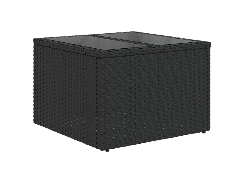 - Materiál: PE ratan, práškově lakovaná ocel, tvrzené sklo