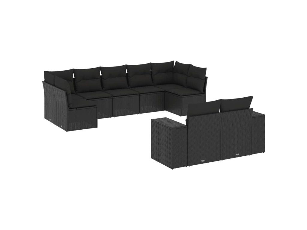 9dílná zahradní sedací souprava s poduškami černá polyratan 3223014