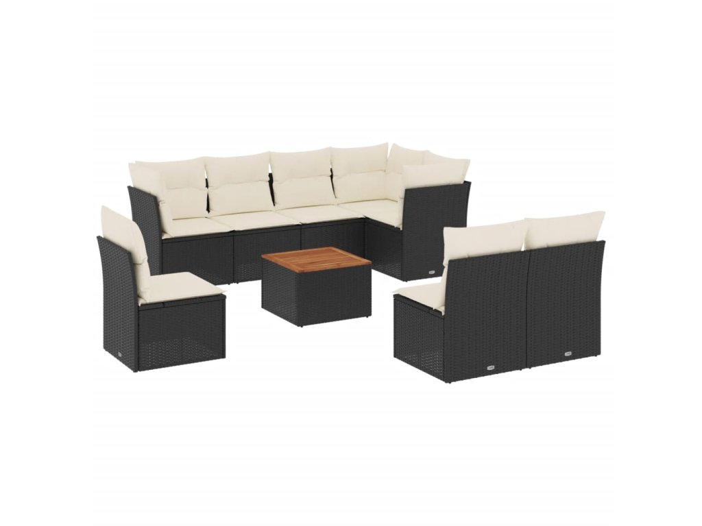 9dílná zahradní sedací souprava s poduškami černá polyratan 3223683