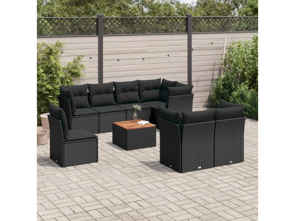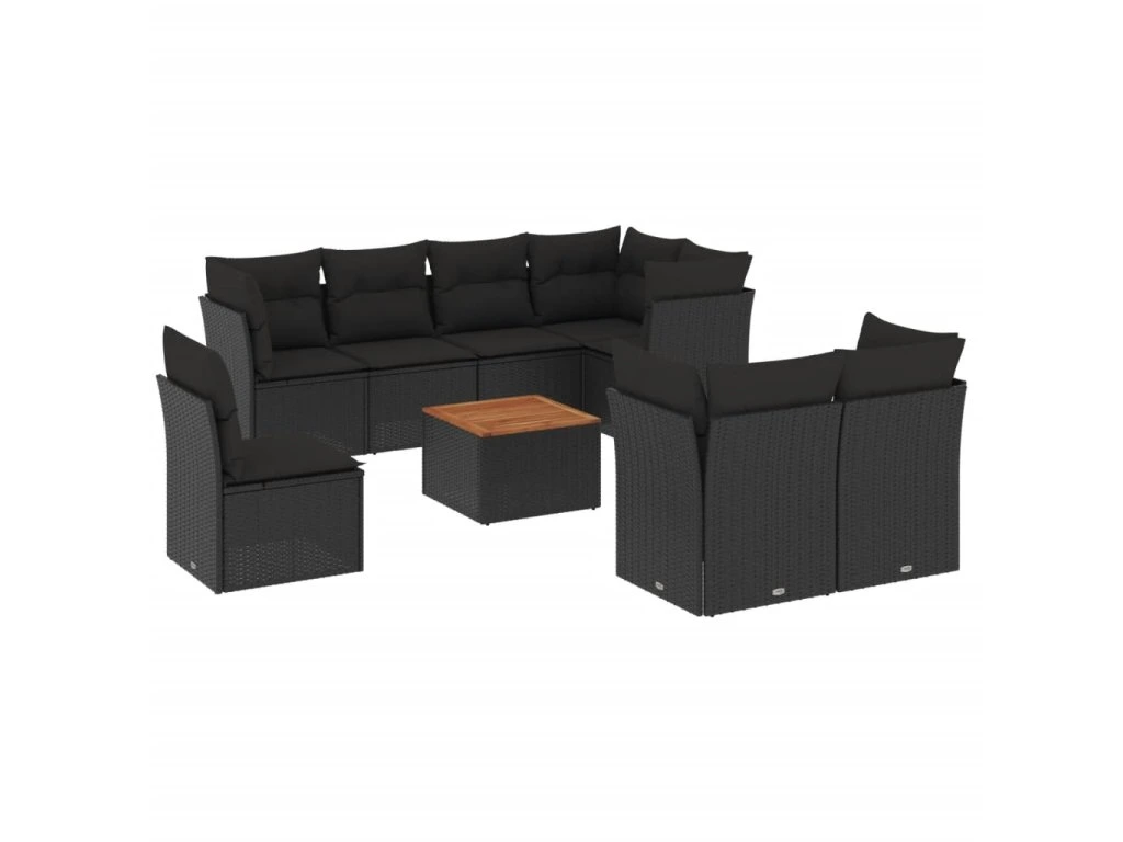 9dílná zahradní sedací souprava s poduškami černá polyratan 3223738