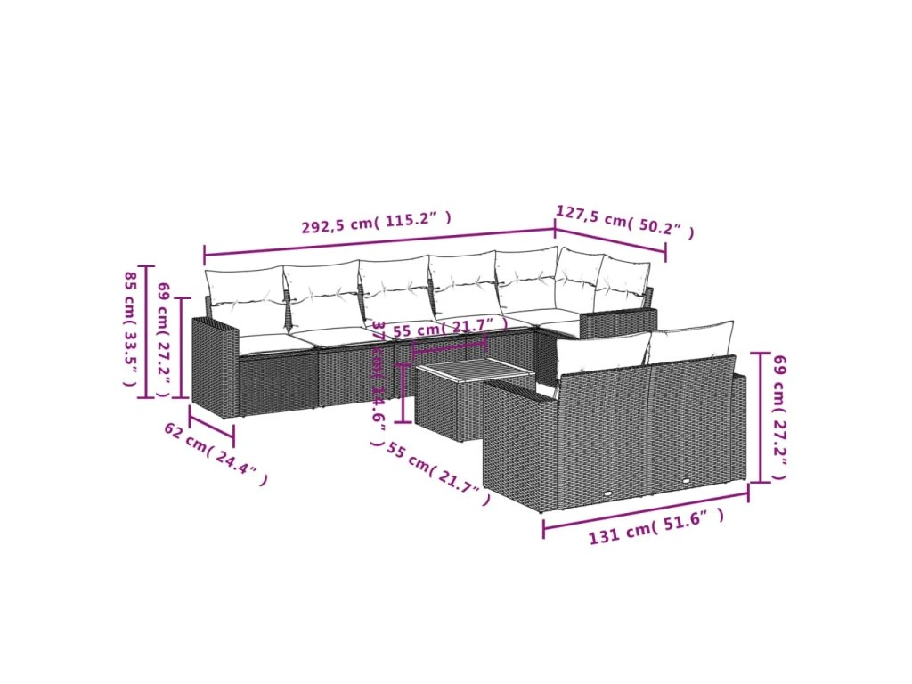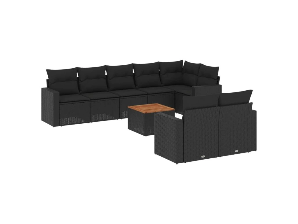 9dílná zahradní sedací souprava s poduškami černá polyratan 3224207