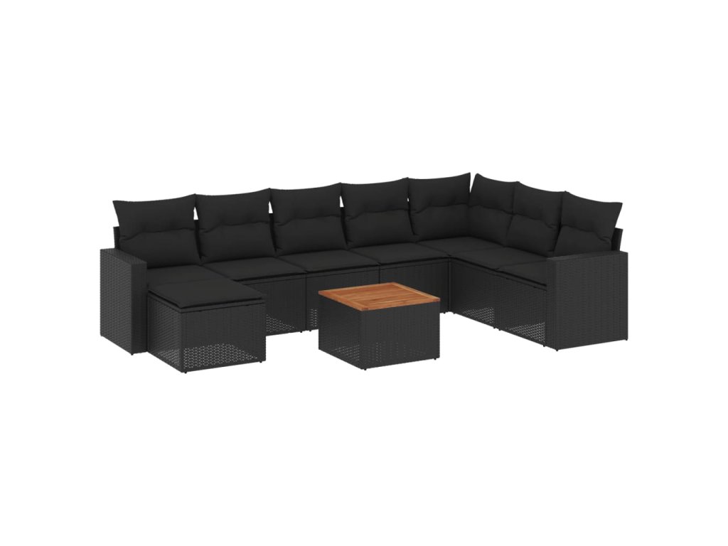9dílná zahradní sedací souprava s poduškami černá polyratan 3224256