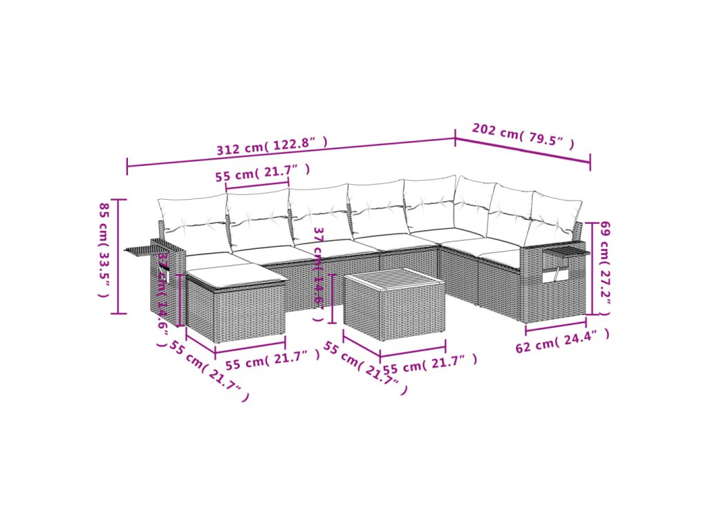 9dílná zahradní sedací souprava s poduškami černá polyratan 3224698