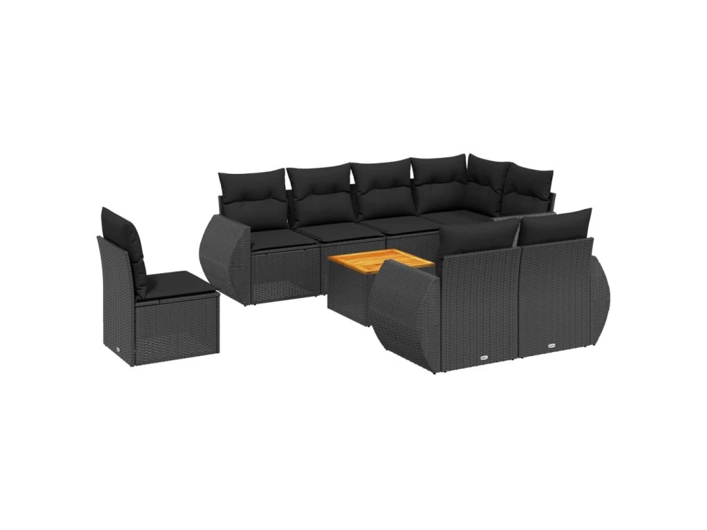 9dílná zahradní sedací souprava s poduškami černá polyratan 3225096