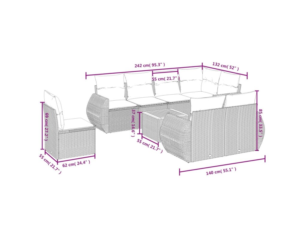 Tato zahradní sedací souprava je dokonalým doplňkem vaší zahrady, terasy nebo dvorku a poskytne vám pohodlné a příjemné místo, kde si můžete povídat s rodinou a přáteli nebo jen tak odpočívat a užívat si pobyt venku.