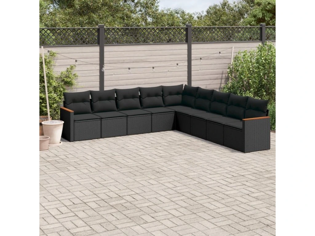 9dílná zahradní sedací souprava s poduškami černá polyratan 3226055