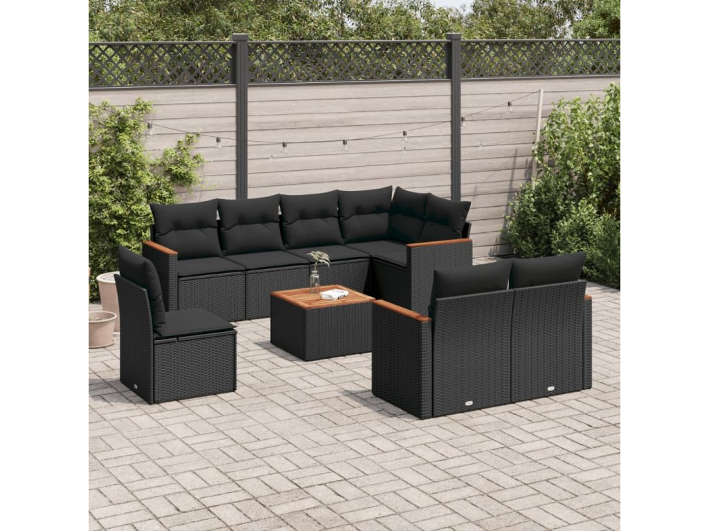 9dílná zahradní sedací souprava s poduškami černá polyratan 3226167