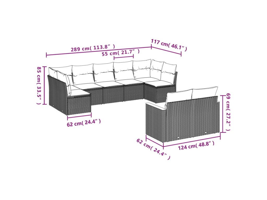 9dílná zahradní sedací souprava s poduškami černá polyratan 3226287