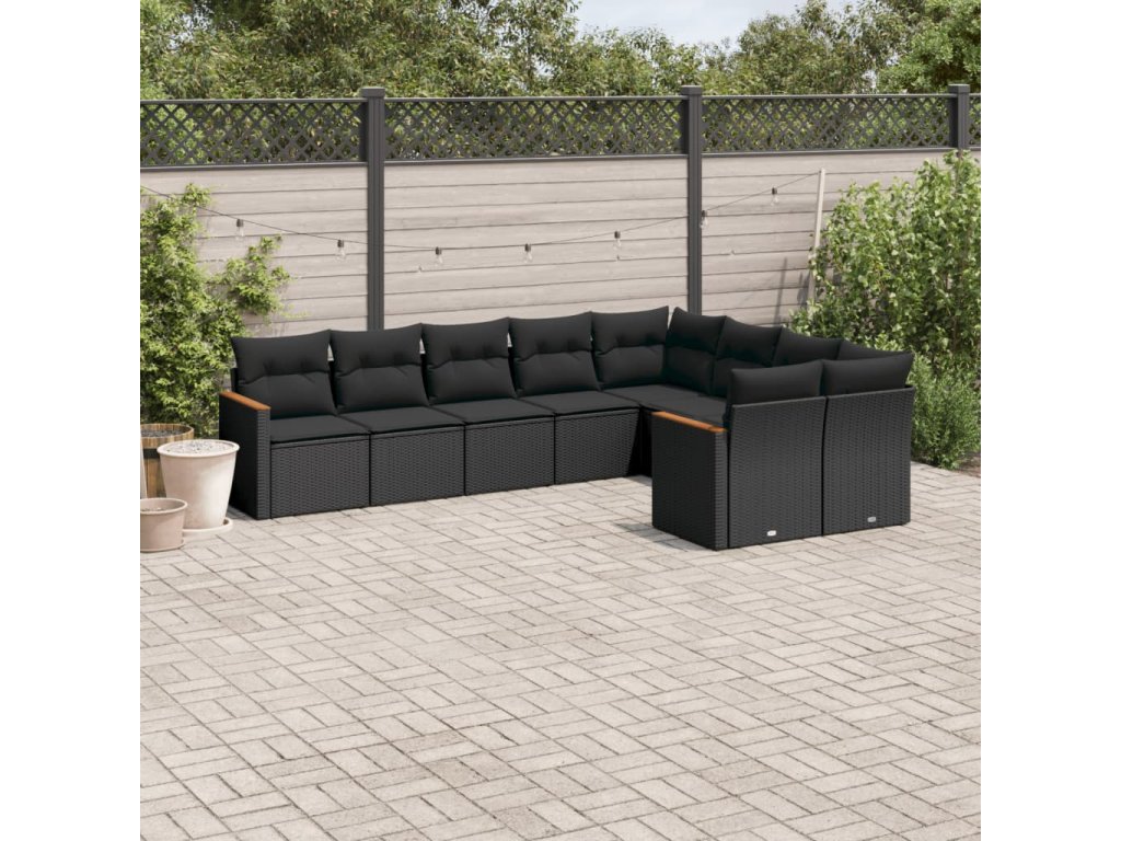9dílná zahradní sedací souprava s poduškami černá polyratan 3226300
