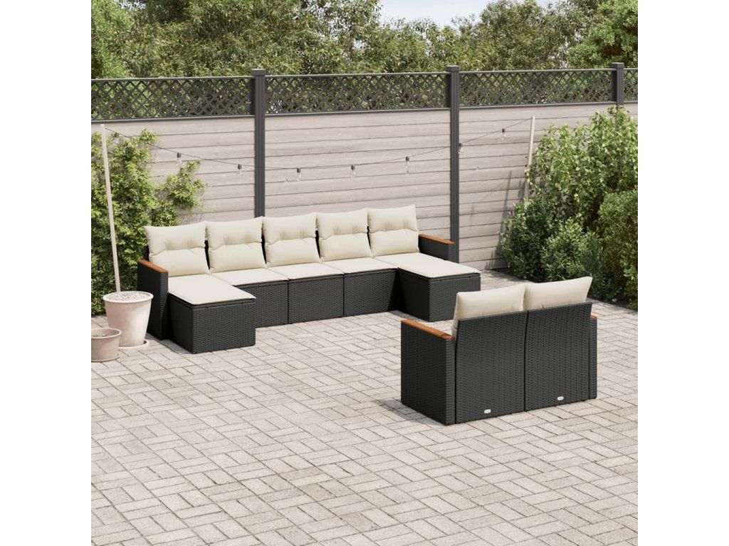 9dílná zahradní sedací souprava s poduškami černá polyratan 3226399