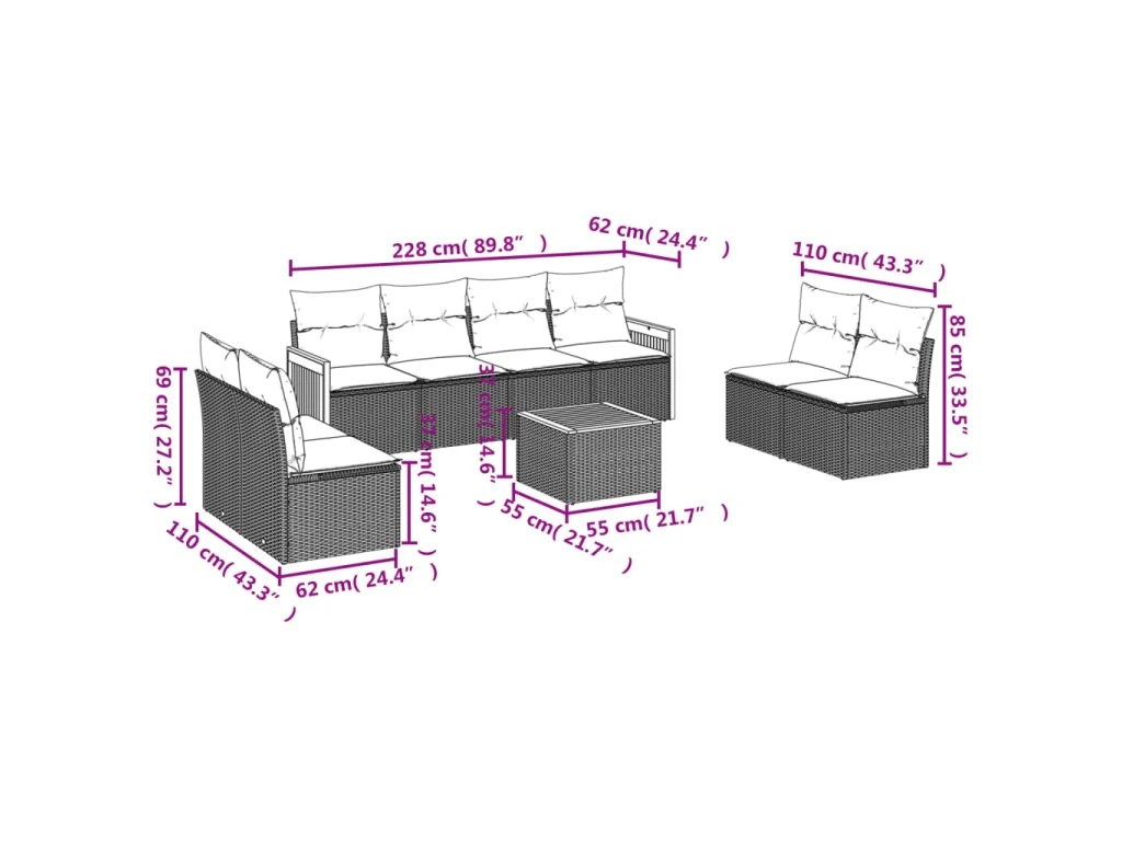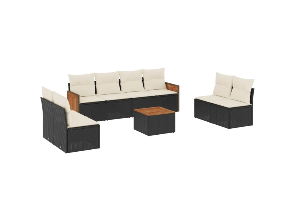 9dílná zahradní sedací souprava s poduškami černá polyratan 3227575