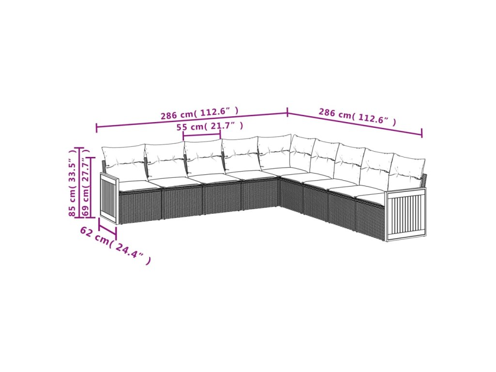 9dílná zahradní sedací souprava s poduškami černá polyratan 3227736