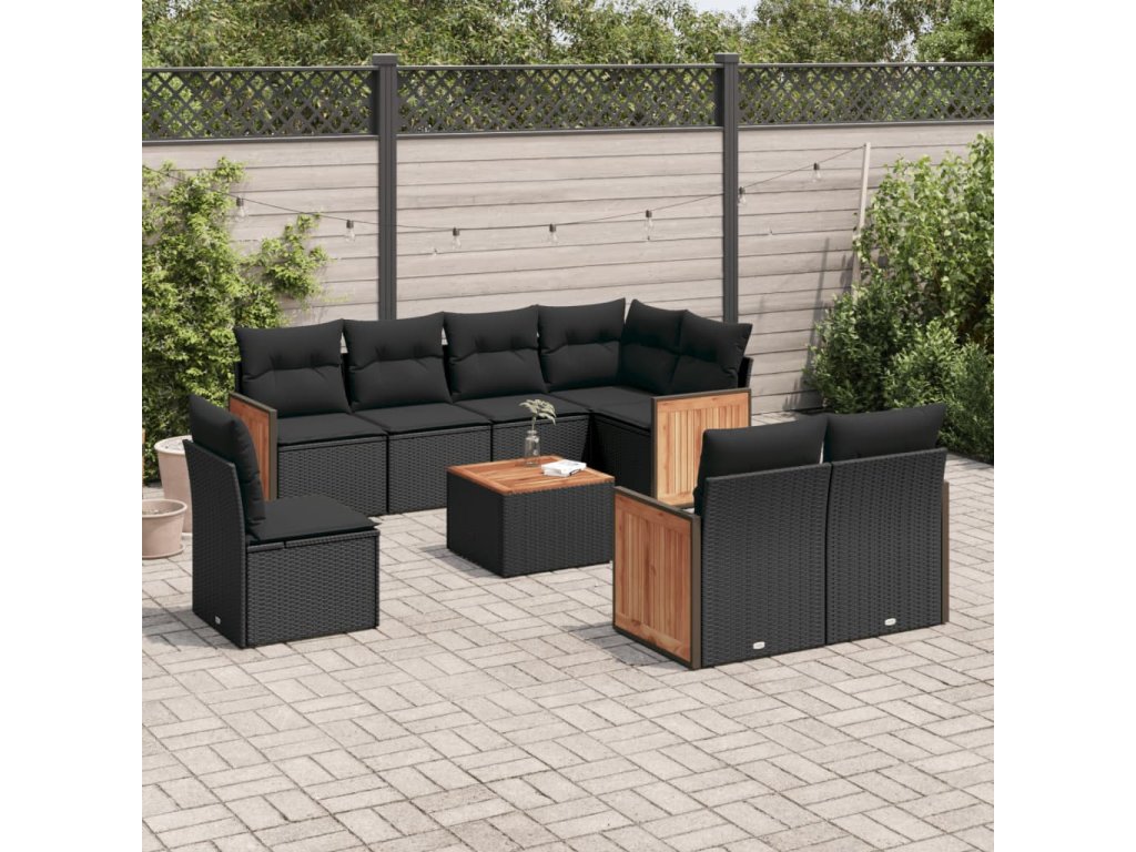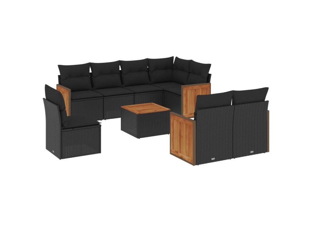9dílná zahradní sedací souprava s poduškami černá polyratan 3227847