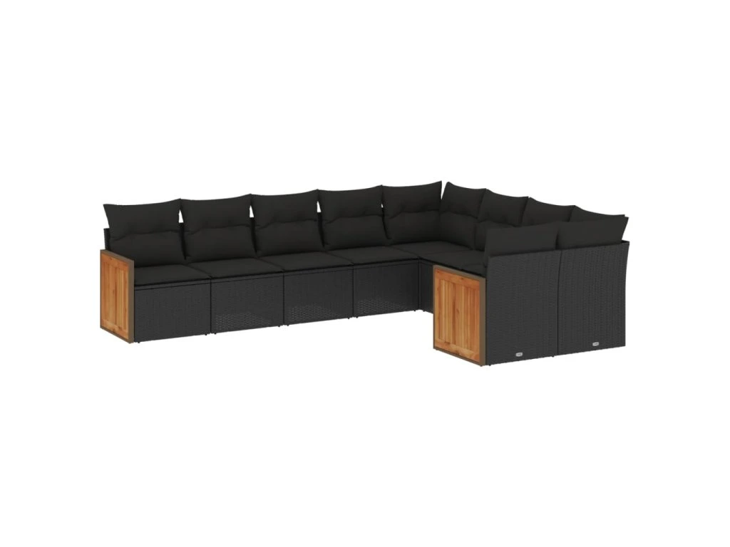 9dílná zahradní sedací souprava s poduškami černá polyratan 3227980