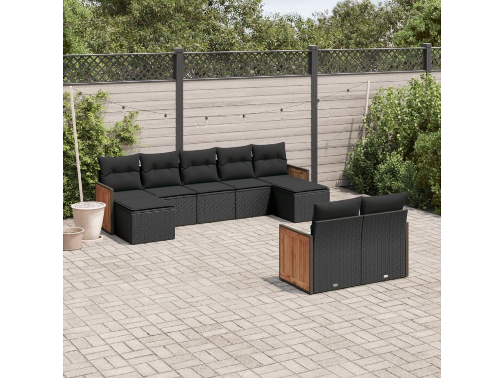 9dílná zahradní sedací souprava s poduškami černá polyratan 3228078
