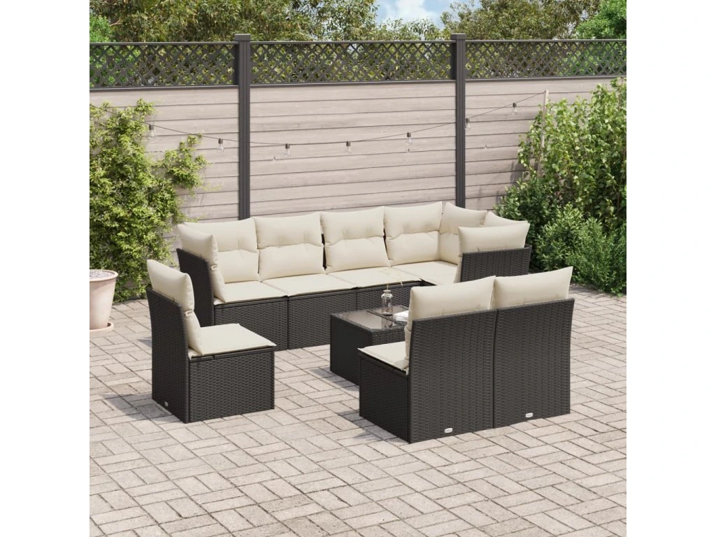 9dílná zahradní sedací souprava s poduškami černá polyratan 3249605