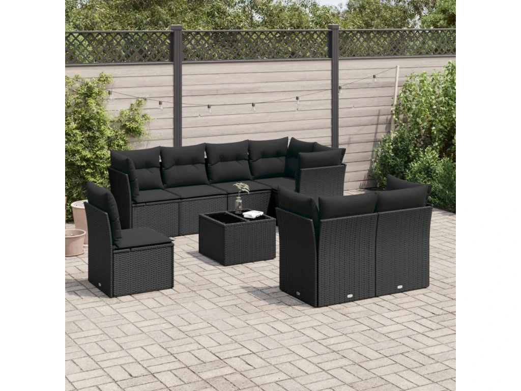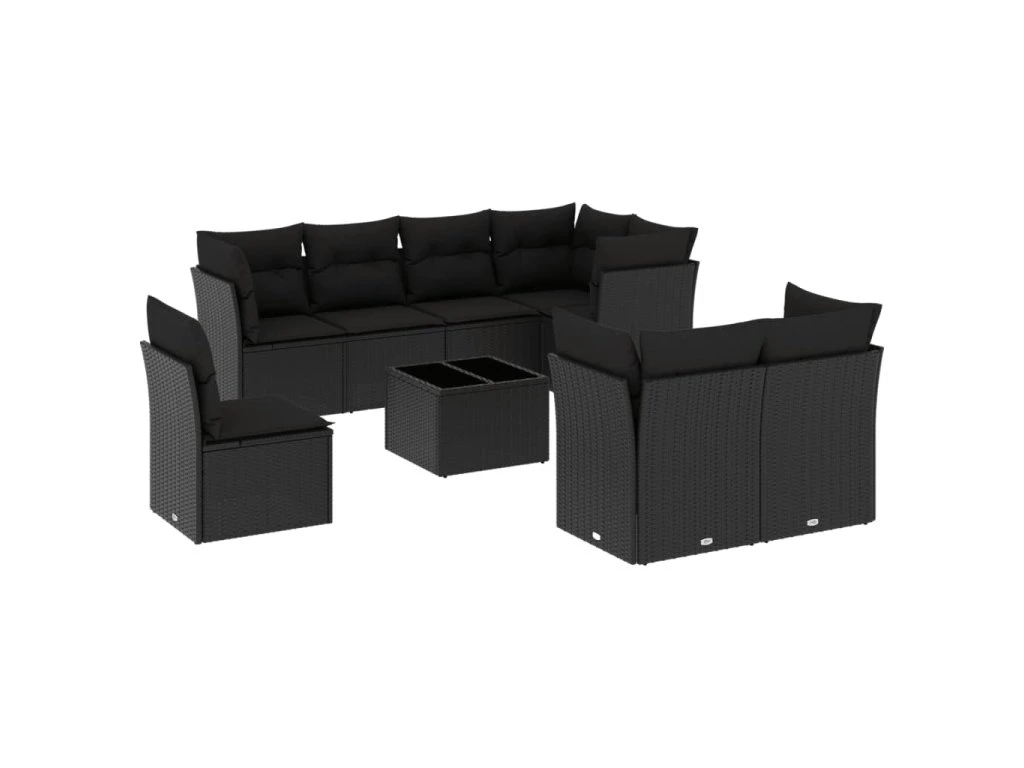 9dílná zahradní sedací souprava s poduškami černá polyratan 3249774