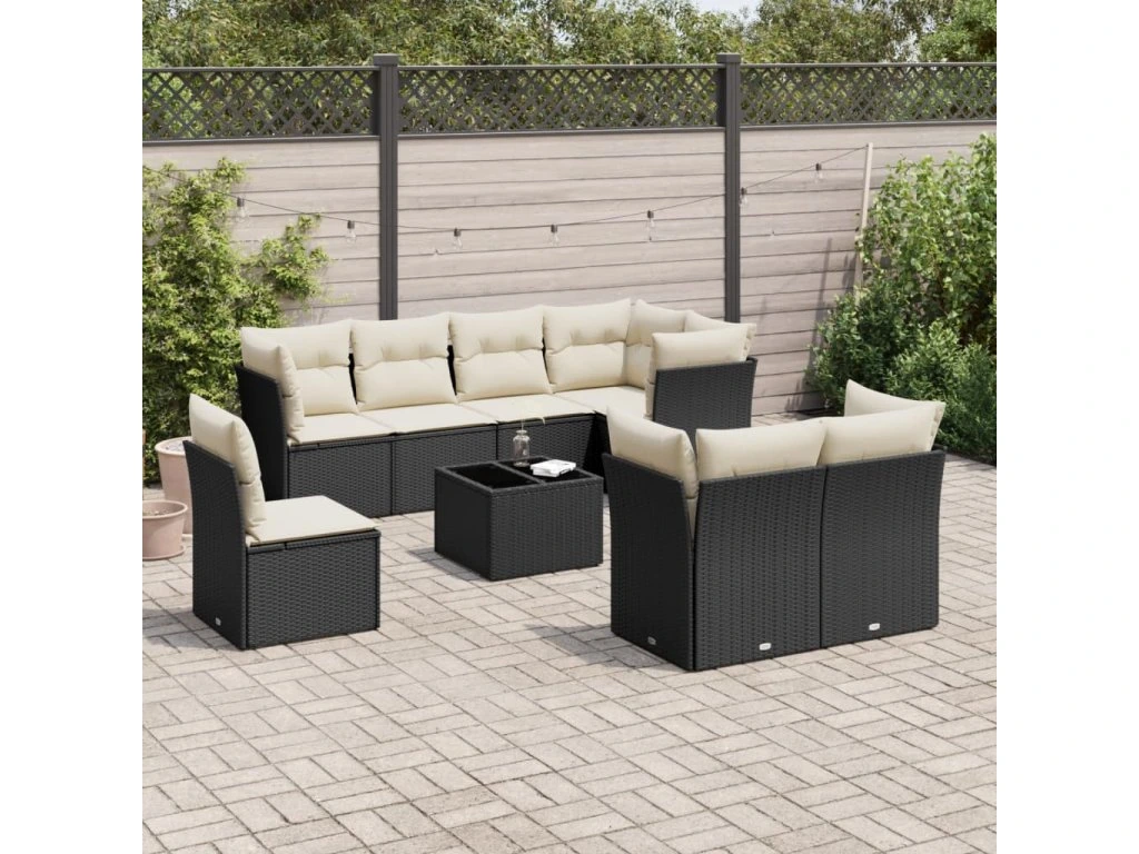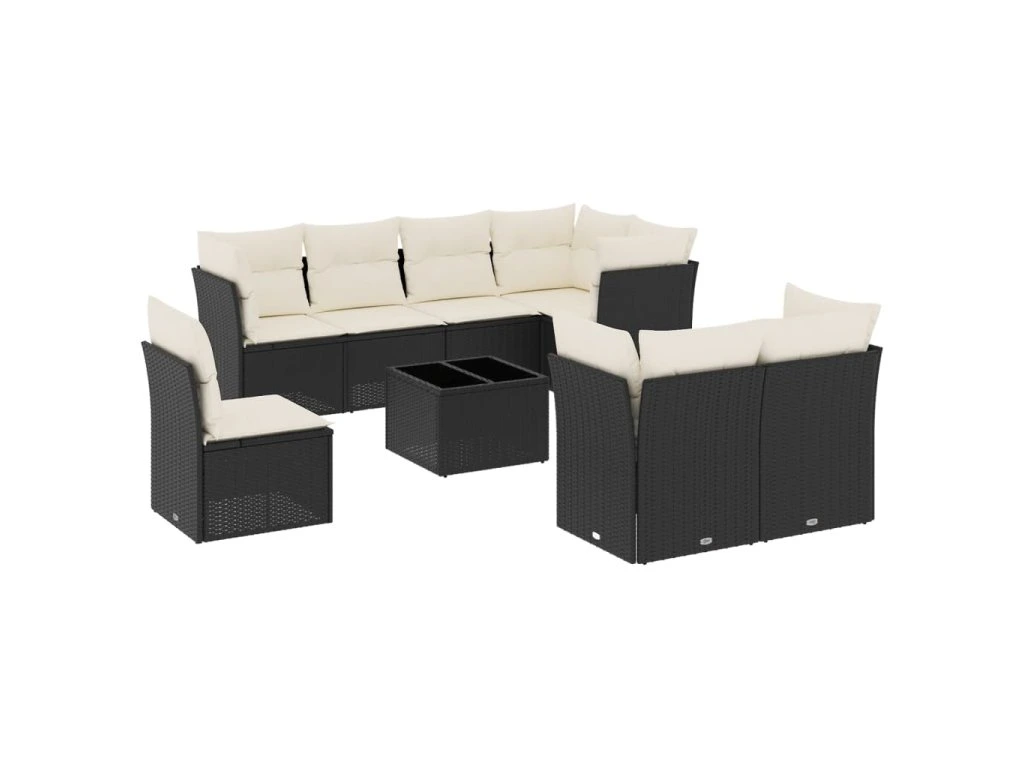 9dílná zahradní sedací souprava s poduškami černá polyratan 3249775