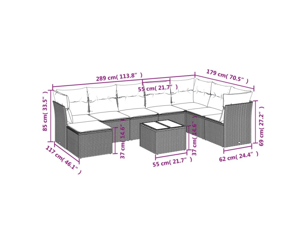 9dílná zahradní sedací souprava s poduškami černá polyratan 3249895