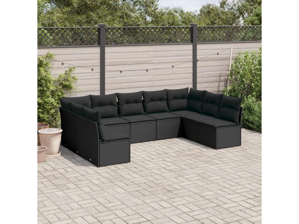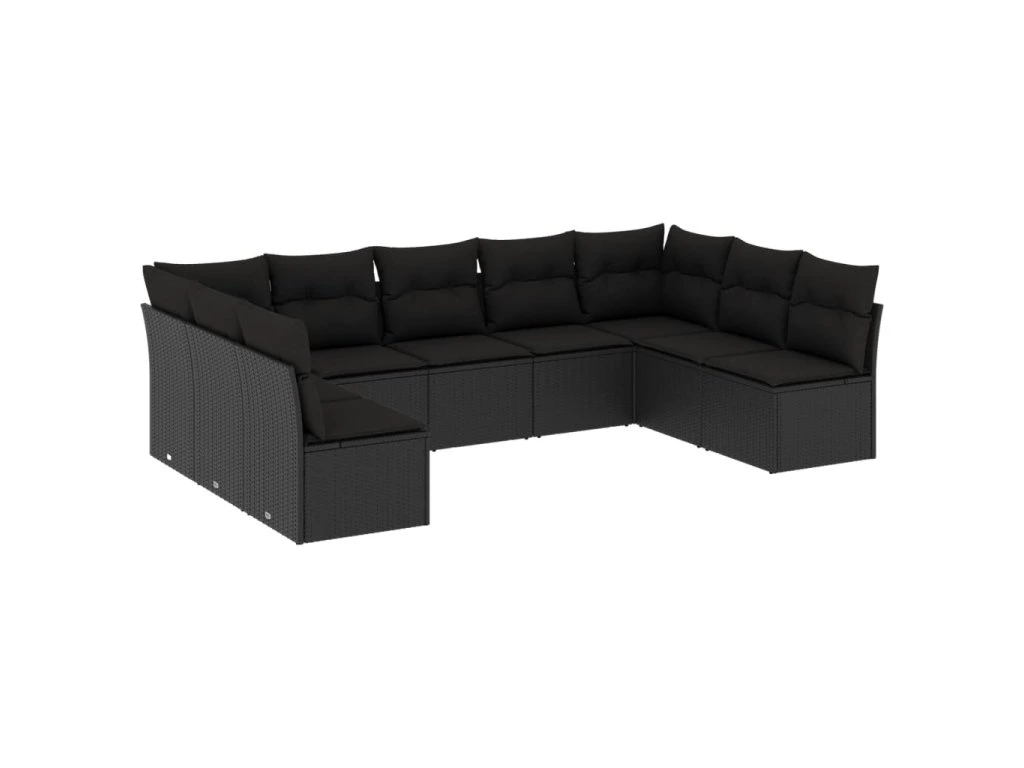 9dílná zahradní sedací souprava s poduškami černá polyratan 3249904