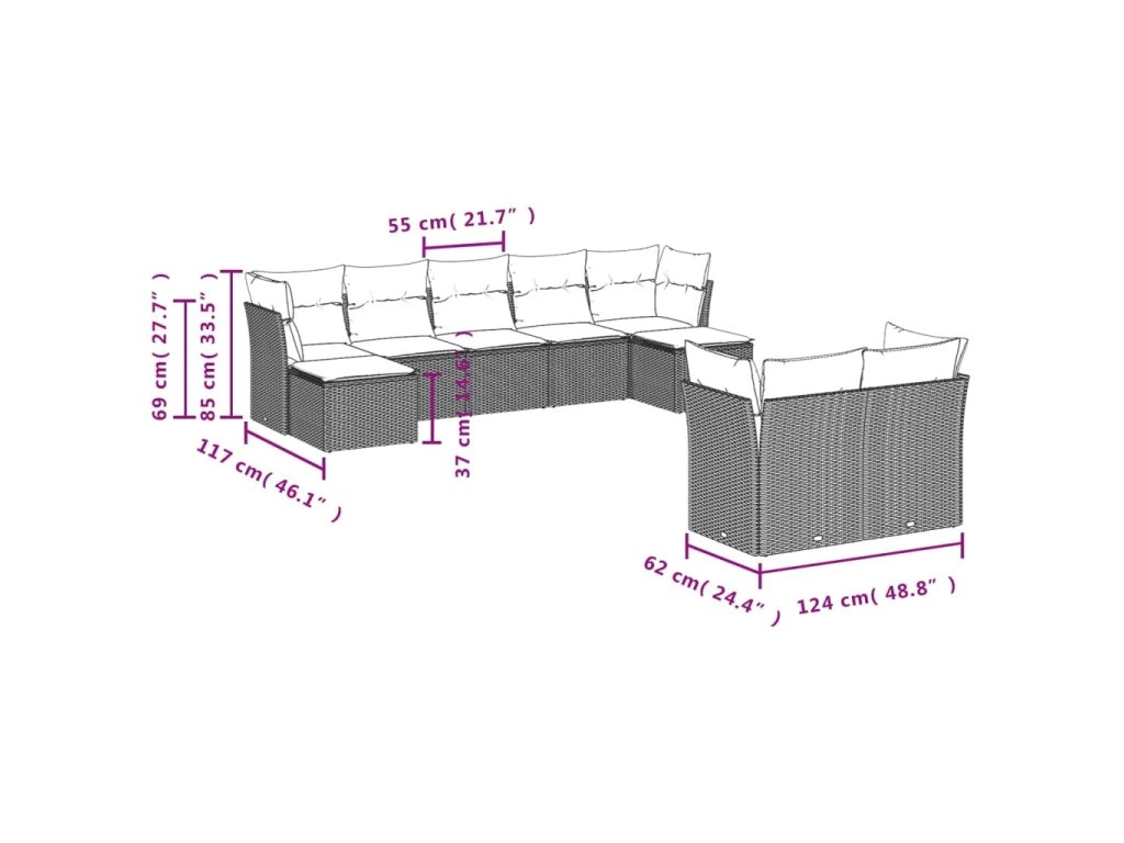 9dílná zahradní sedací souprava s poduškami černá polyratan 3250145