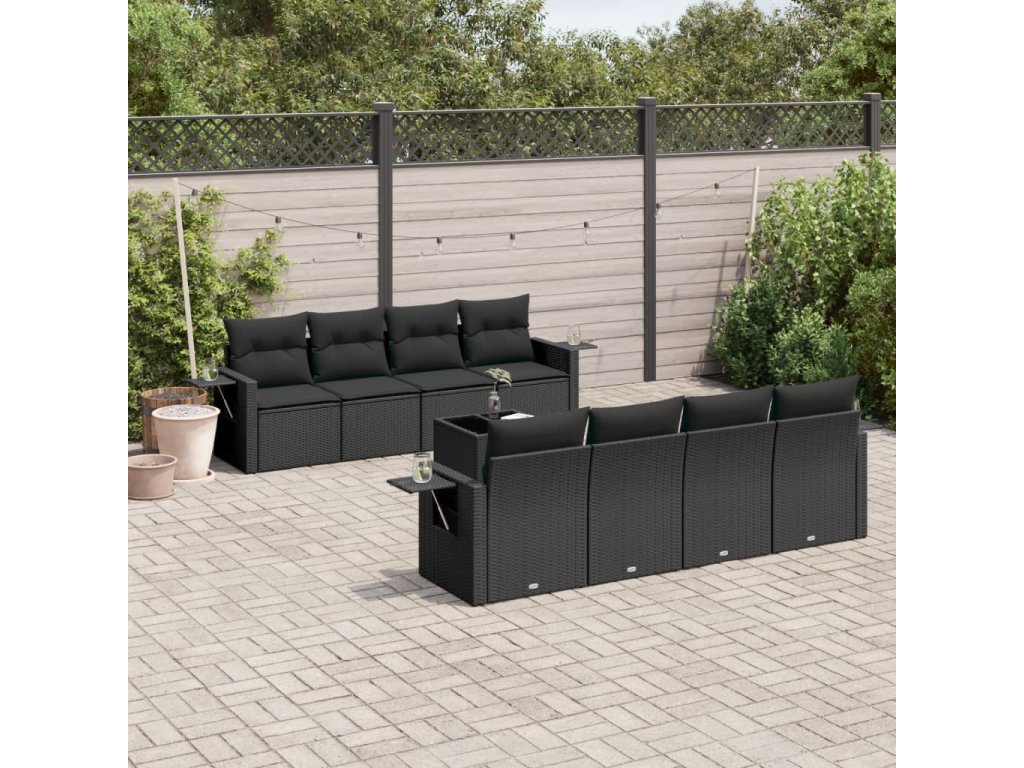 9dílná zahradní sedací souprava s poduškami černá polyratan 3252282