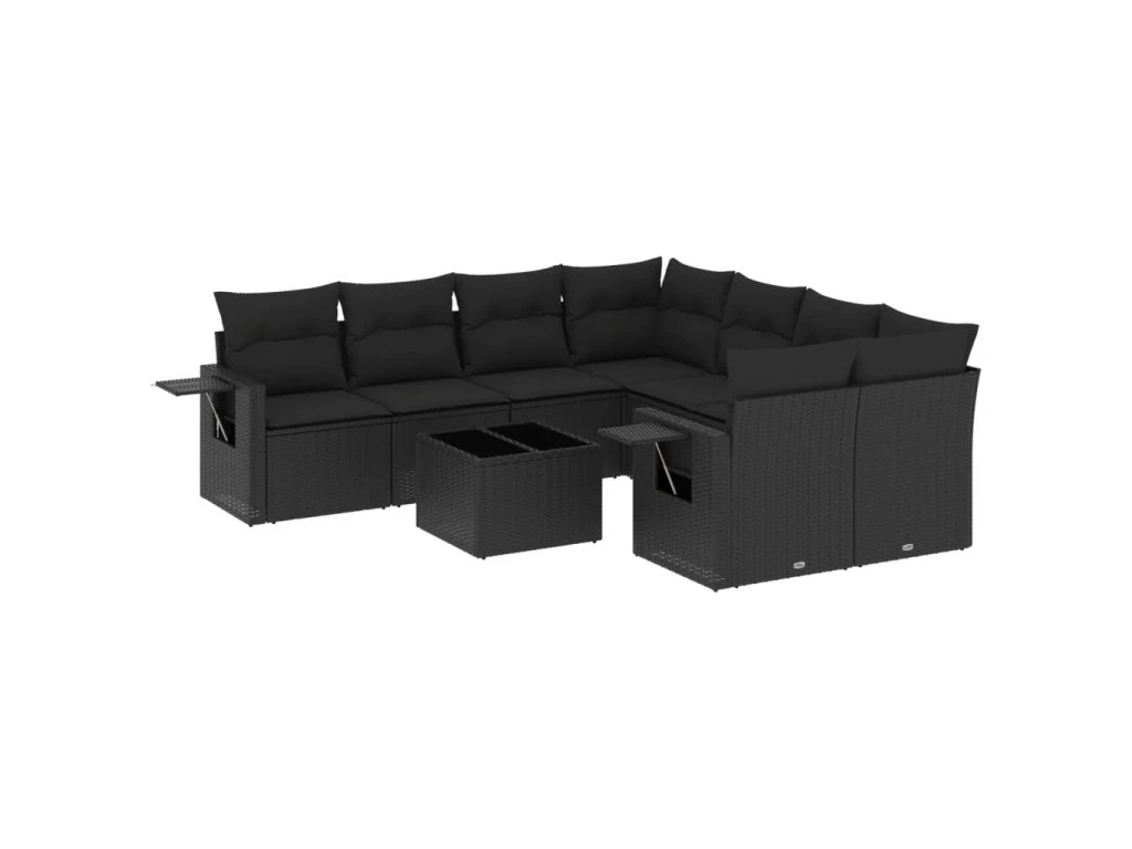 9dílná zahradní sedací souprava s poduškami černá polyratan 3252292