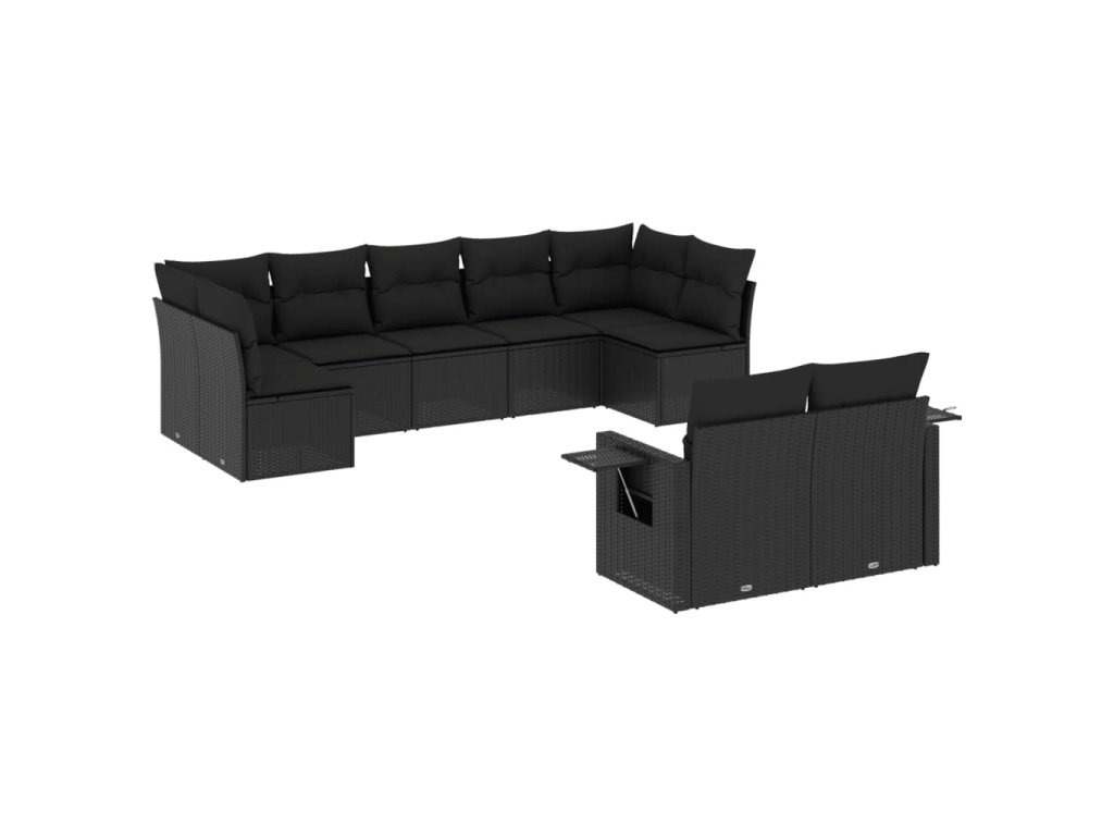 9dílná zahradní sedací souprava s poduškami černá polyratan 3252952