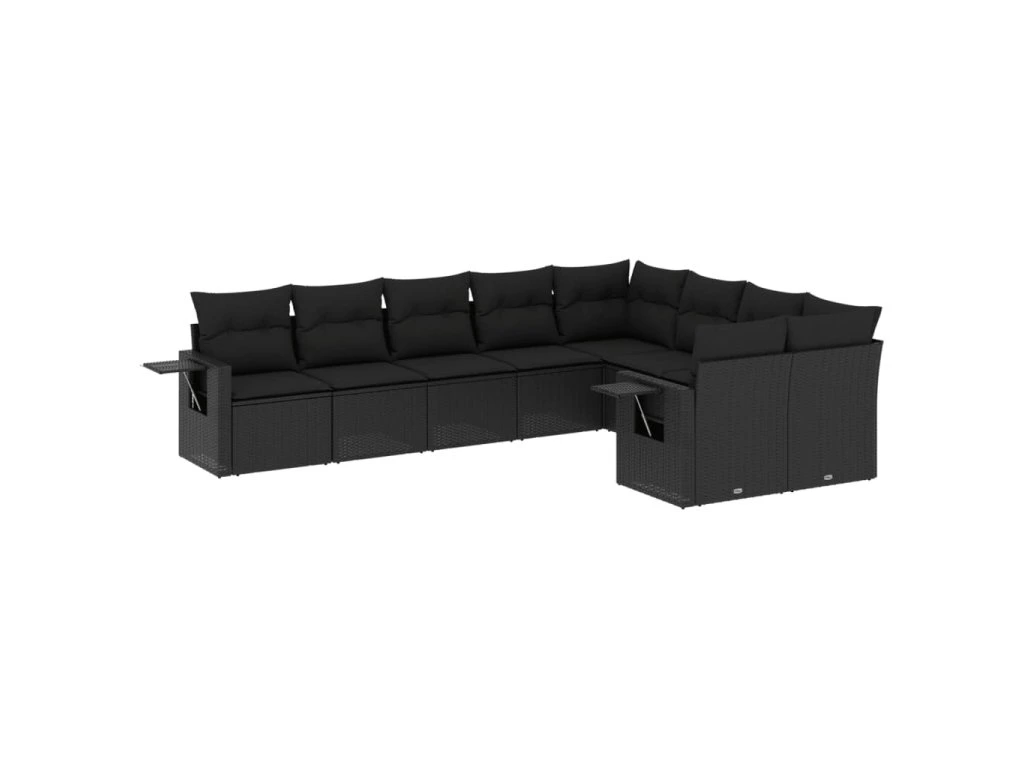9dílná zahradní sedací souprava s poduškami černá polyratan 3252972