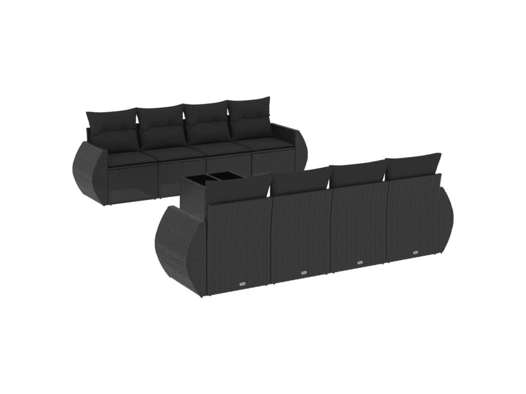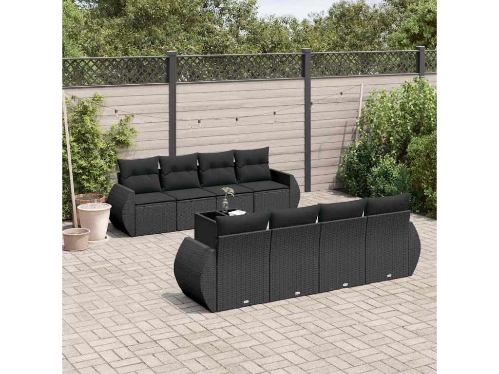9dílná zahradní sedací souprava s poduškami černá polyratan 3253482