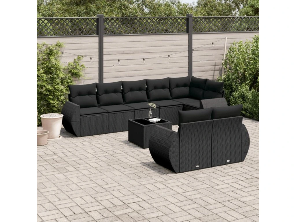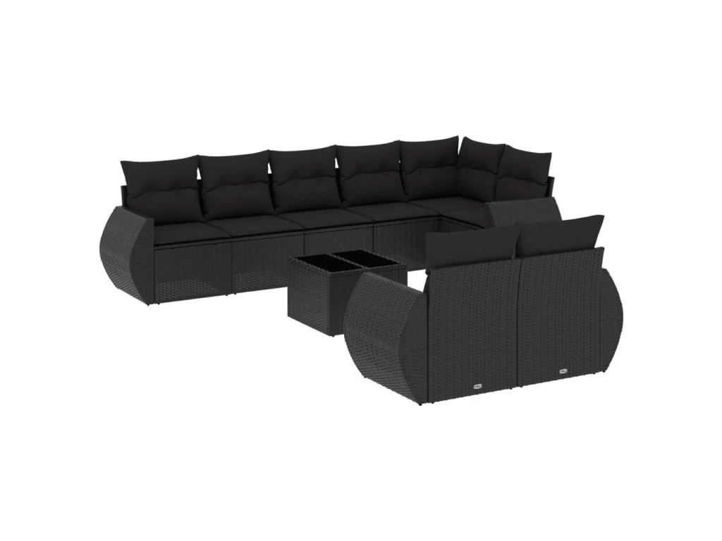 9dílná zahradní sedací souprava s poduškami černá polyratan 3253962