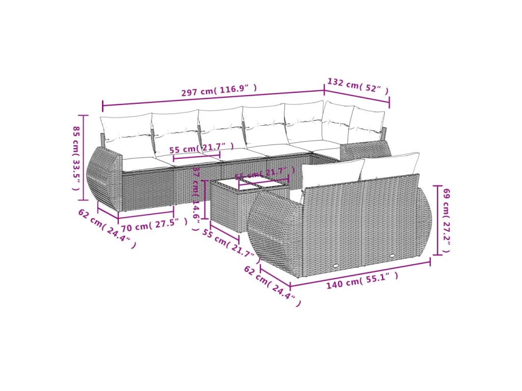 Tato zahradní sedací souprava je dokonalým doplňkem vaší zahrady, terasy nebo dvorku a poskytne vám pohodlné a příjemné místo, kde si můžete povídat s rodinou a přáteli nebo jen tak odpočívat a užívat si pobyt venku.
