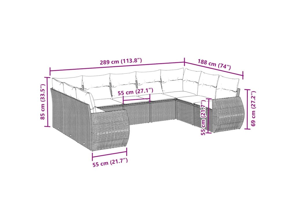 9dílná zahradní sedací souprava s poduškami černá polyratan 3254133