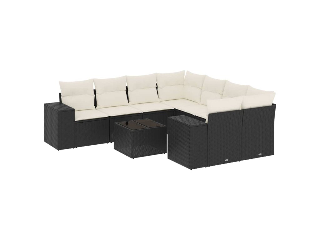 9dílná zahradní sedací souprava s poduškami černá polyratan 3254693