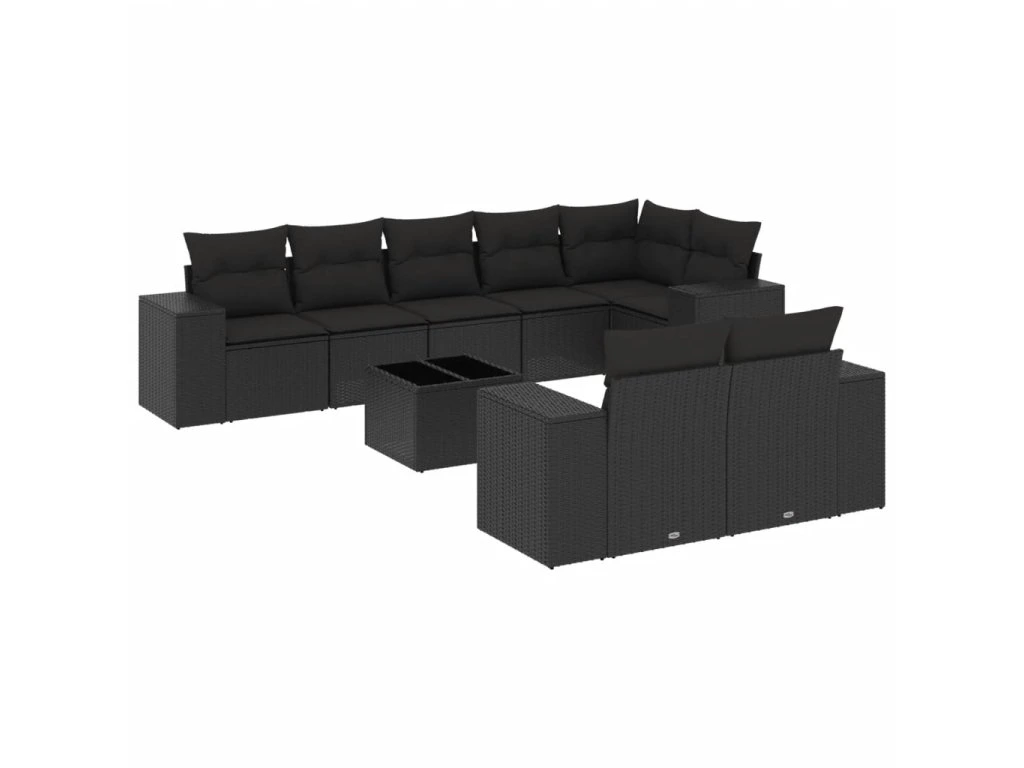 9dílná zahradní sedací souprava s poduškami černá polyratan 3255162