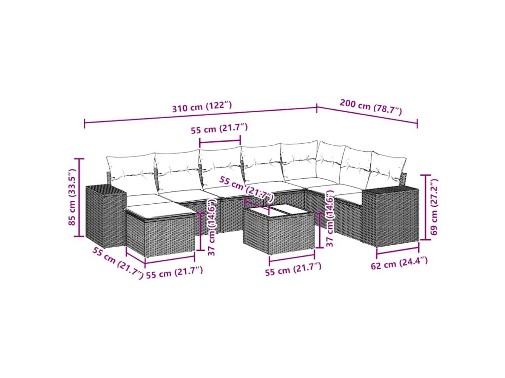 Tato zahradní sedací souprava je dokonalým doplňkem vaší zahrady, terasy nebo dvorku a poskytne vám pohodlné a příjemné místo, kde si můžete povídat s rodinou a přáteli nebo jen tak odpočívat a užívat si pobyt venku.
