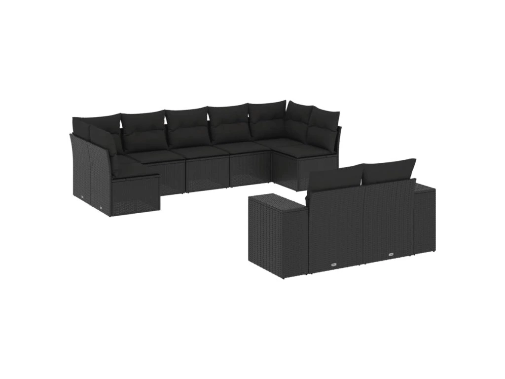 9dílná zahradní sedací souprava s poduškami černá polyratan 3255352