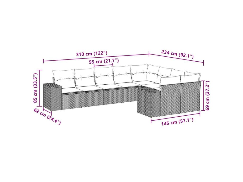 9dílná zahradní sedací souprava s poduškami černá polyratan 3255373