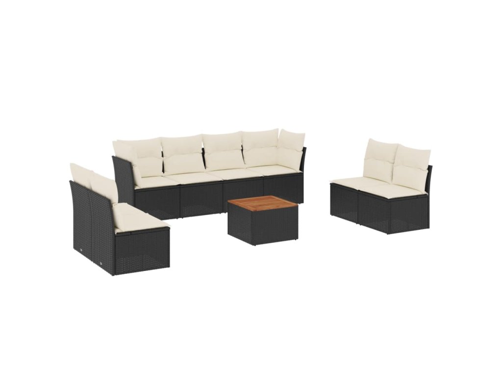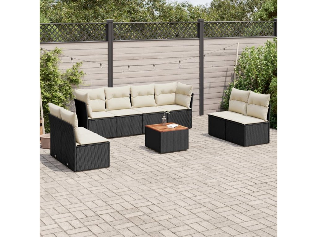 9dílná zahradní sedací souprava s poduškami černá polyratan 3255909