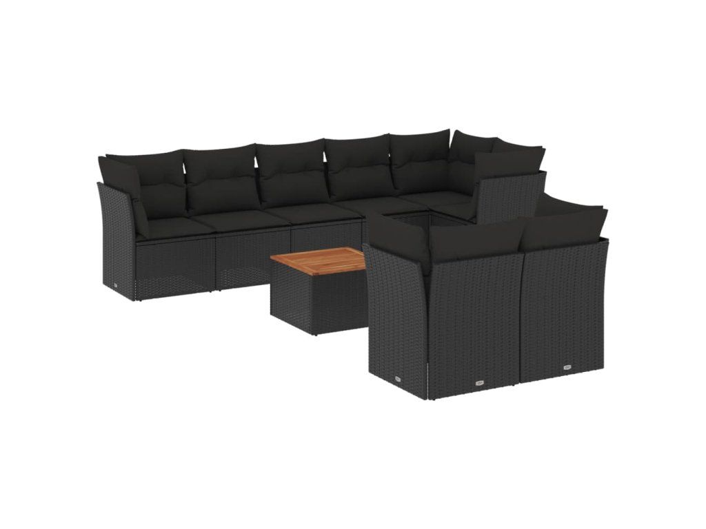 9dílná zahradní sedací souprava s poduškami černá polyratan 3256062