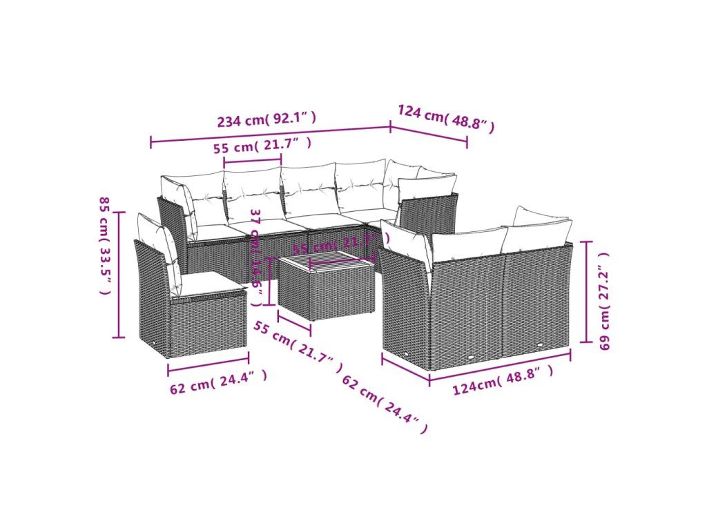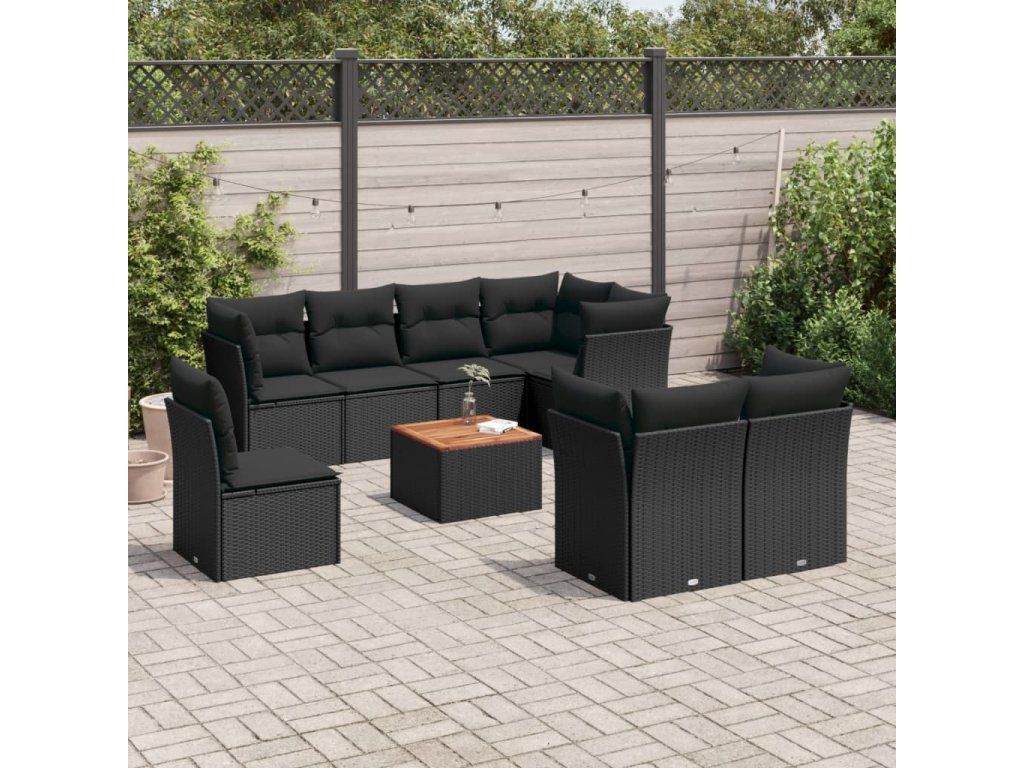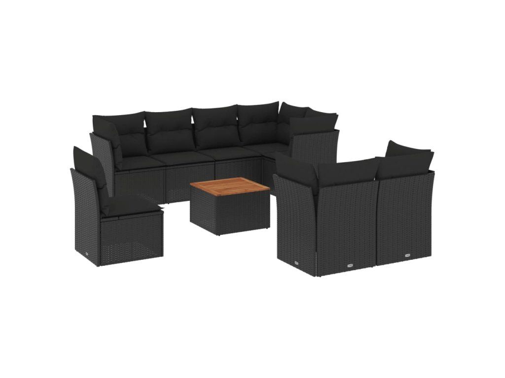 9dílná zahradní sedací souprava s poduškami černá polyratan 3256069