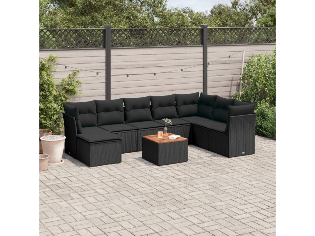 9dílná zahradní sedací souprava s poduškami černá polyratan 3256111