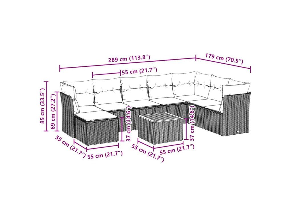 9dílná zahradní sedací souprava s poduškami černá polyratan 3256112